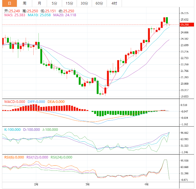 在此之后,去年4月和3月分别接近26.25美元和26.95美元的高点可能会引起市场的关注。