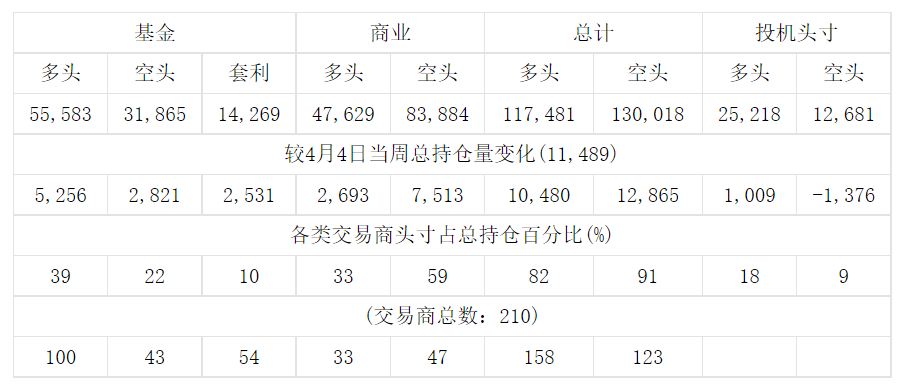 美国商品期货交易委员会(CFTC)最新公布截止4月11日当周COMEX白银期货分类持仓报告: