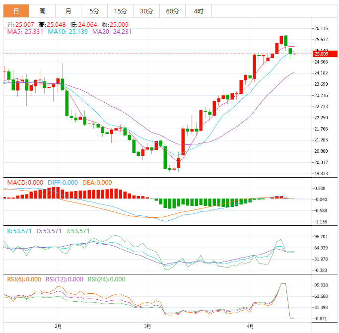 在银价跌破24.15美元的情况下,不排除银价跌向3月份高点近23.50美元的可能性。