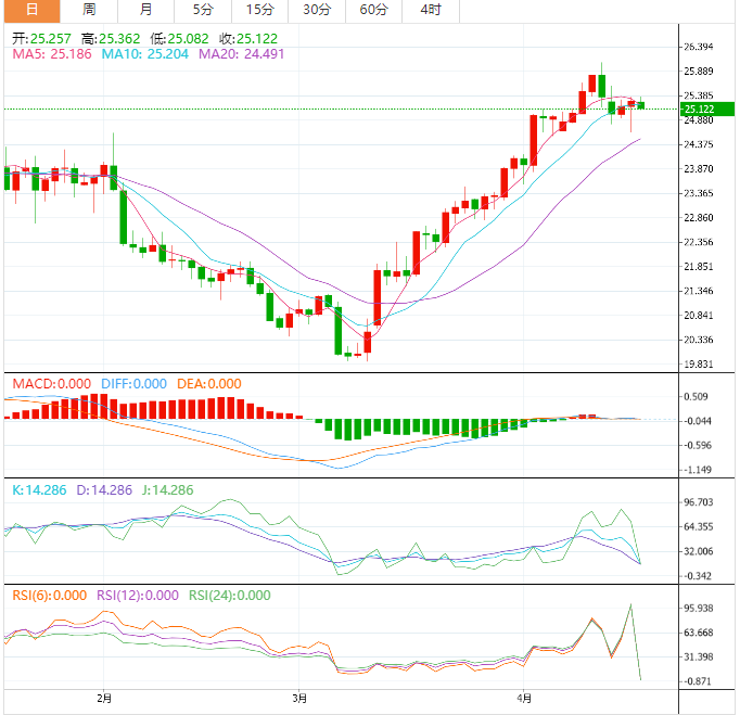 周四早些时候,白银价格跌至25.20美元,刷新盘中低点。随着对供应紧张的担忧在避险情绪中消退,白银在三个交易日中首次出现下跌。