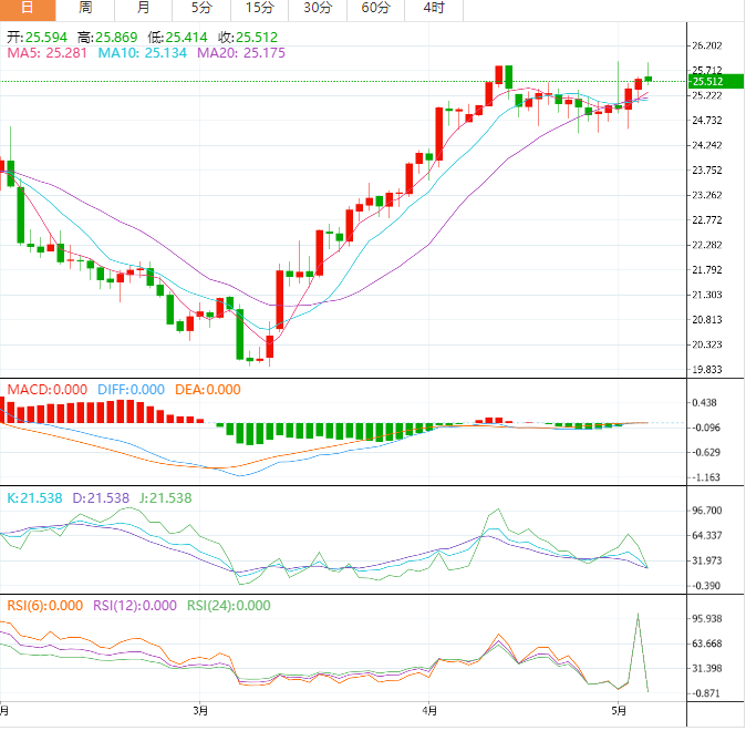 白银在早盘上扬至26.00美元附近后吸引了一些卖家,并在周四的欧洲早盘时段扩大了盘中跌幅。白银在最后一小时跌至新的日低约25.45美元,目前看来,已经结束了连续两天的涨势,回到了周一触及的逾两周高点附近。