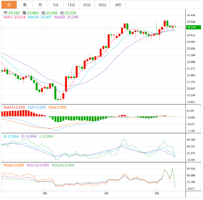 相反,由于4月25日至5月5日的61.8%斐波那契回撤位在25.10美元附近移动,明显跌破25.40美元对白银卖家来说并不是一个受欢迎的信号。