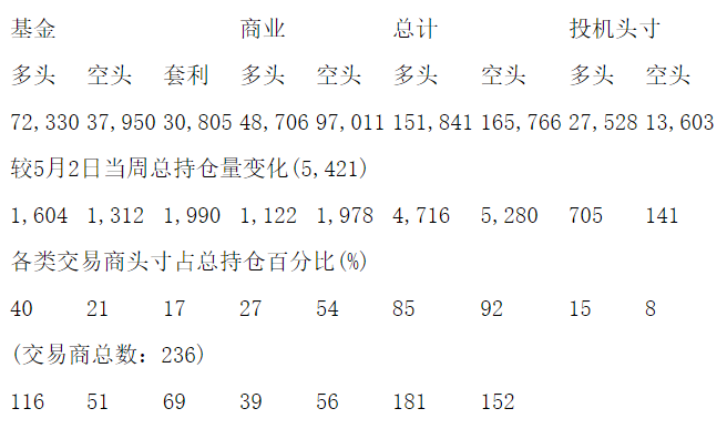 美国商品期货交易委员会(CFTC)最新公布截止5月9日当周COMEX白银期货和期权分类持仓报告: