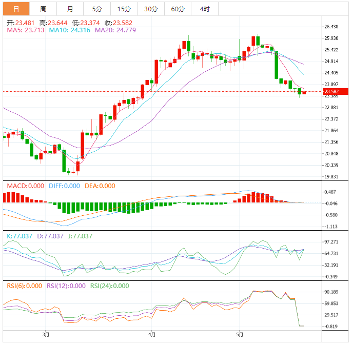 白银价格在23.50美元附近缩减周跌幅,从盘中高位回落,但在周五早盘时仍处于周下跌趋势通道内。在此过程中,白银从前一天创下的七周最低水平反弹。