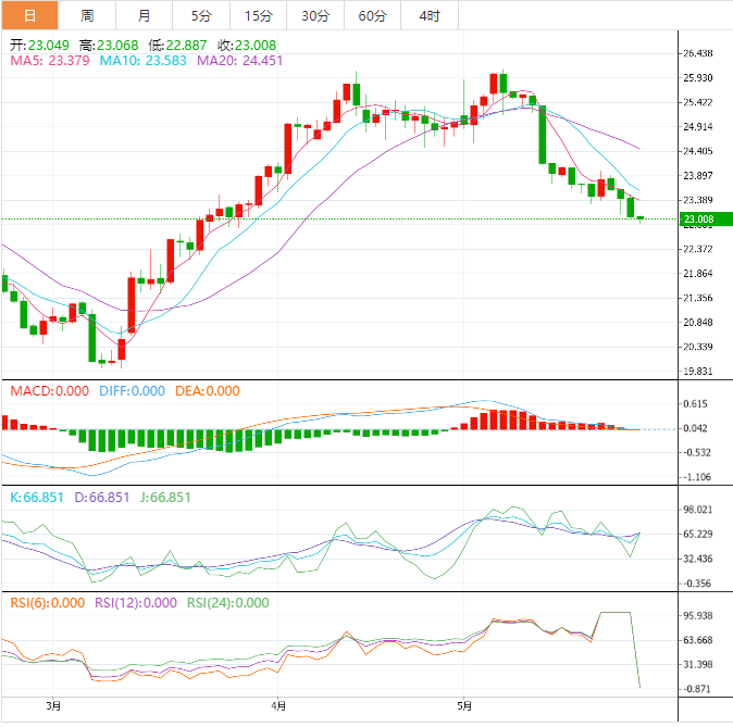 周四亚洲市场早盘,白银价格卖盘在四周以来的最低水平稍作休息,白银价格跌至23.00美元。