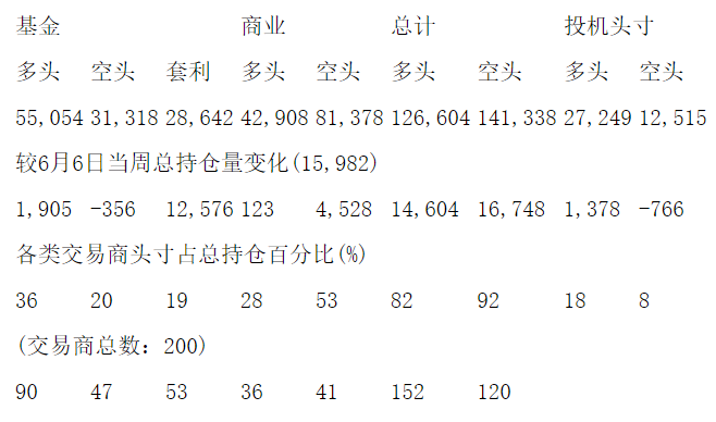 美国商品期货交易委员会(CFTC)最新公布截止6月13日当周COMEX白银期货分类持仓报告: