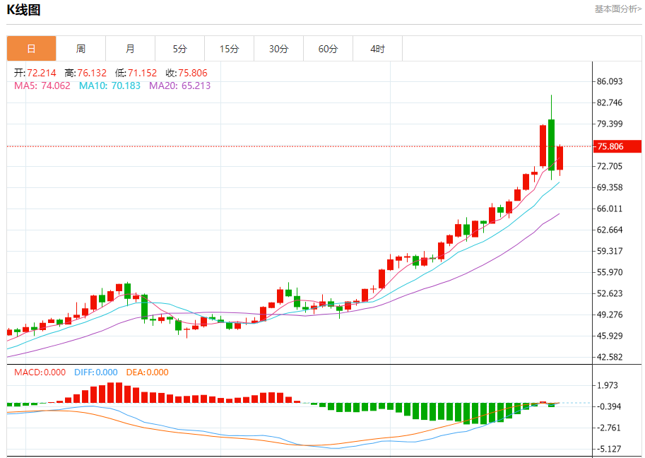 日线图中的看跌吞没形态是一个负面信号,可能预示着更深的修正。 阻力位在76.50美元的日内水平,之后是80.00美元的心理关口和历史高点85.87美元。