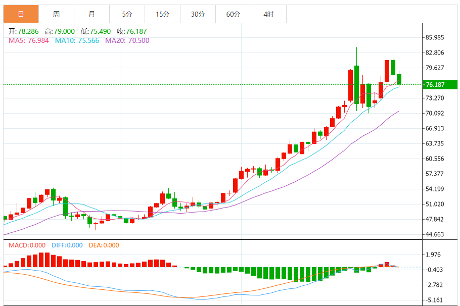 周三(1月7日),现货白银目前位于78.708美元/盎司附近,跌幅为3.09%。