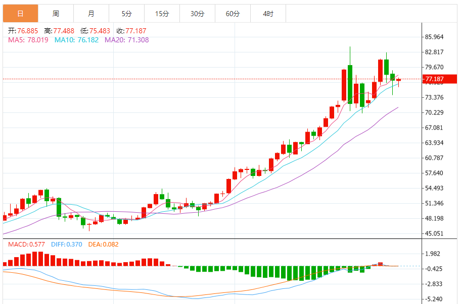 周四(1月8日),现货白银目前位于76.183美元/盎司附近,跌幅为2.53%。