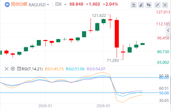 2月5日,周四亚市盘中,白银徘徊在89.94附近。白银价格连续第二天延续反弹,上涨3.75%,摆脱了美元整体强势,此前美国经济数据稳健。