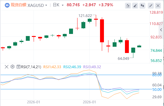 2月9日,周一亚市盘中,白银连续第二个交易日上涨,徘徊在80.80美元附近。作为传统的对冲通胀工具,白银在日本周末选举中首相高苗领导的执政联盟大获全胜后获得支持,这一结果进一步加强了扩张性财政政策的理由。此类政策往往会提振通胀预期,支撑贵金属需求。