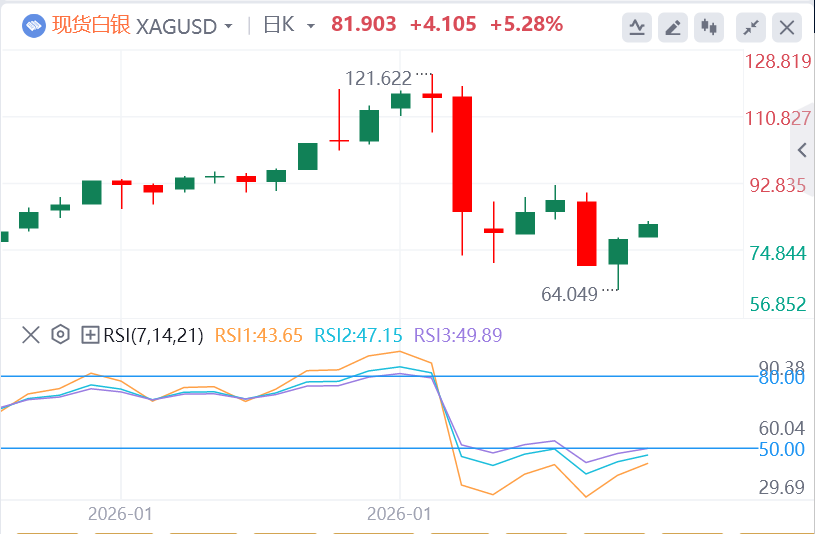 2月9日,白银基于周五从64美元大关口的强劲反弹(即自12月17日以来的最低点)继续运转,并在新一周开始时获得一定的积极势头。白金属在欧洲早盘盘内上涨,目前交易价略低于82.00美元整数,日内上涨超过5.50%。