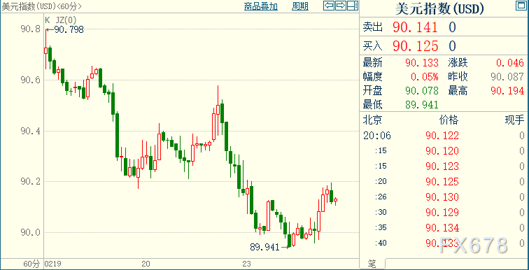 周二(2月23日),现货黄金日内维持窄幅震荡格局,美元指数自日内触及1月13日以来最低点89.941反弹,限制了金价涨势。但随着经济从新冠疫情冲击中复苏,投资人仍押注美元将持续下跌。投资人关注焦点转向美联储主席鲍威尔将如何评论通胀预期回暖局面。