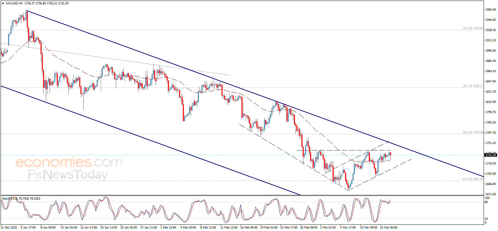 周三(3月17日)亚市早盘,现货黄金基本持稳,金价现报1731美元/盎司附近。知名财经网站Economies.com撰文,对金价后市走势进行分析。