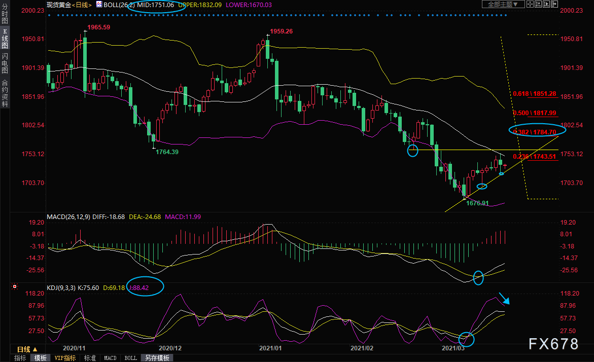 短线的话,仍需留意23.6%回撤位1743.51附近阻力和2月19日低点1760关口附近阻力。