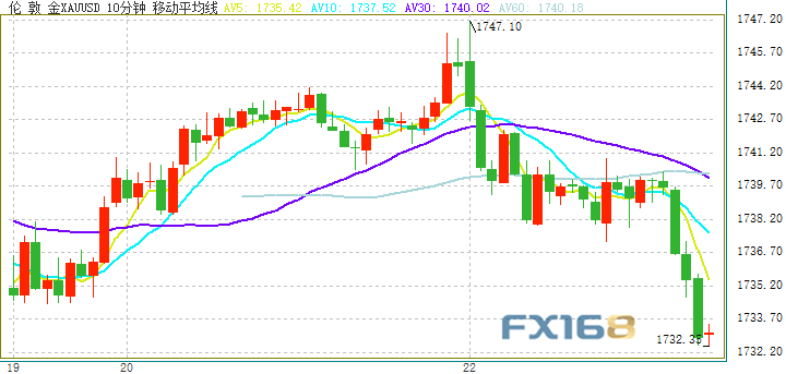 美元指数亚市早盘反弹至92.10附近,金价短线快速下滑,最低触及1732.35美元/盎司。