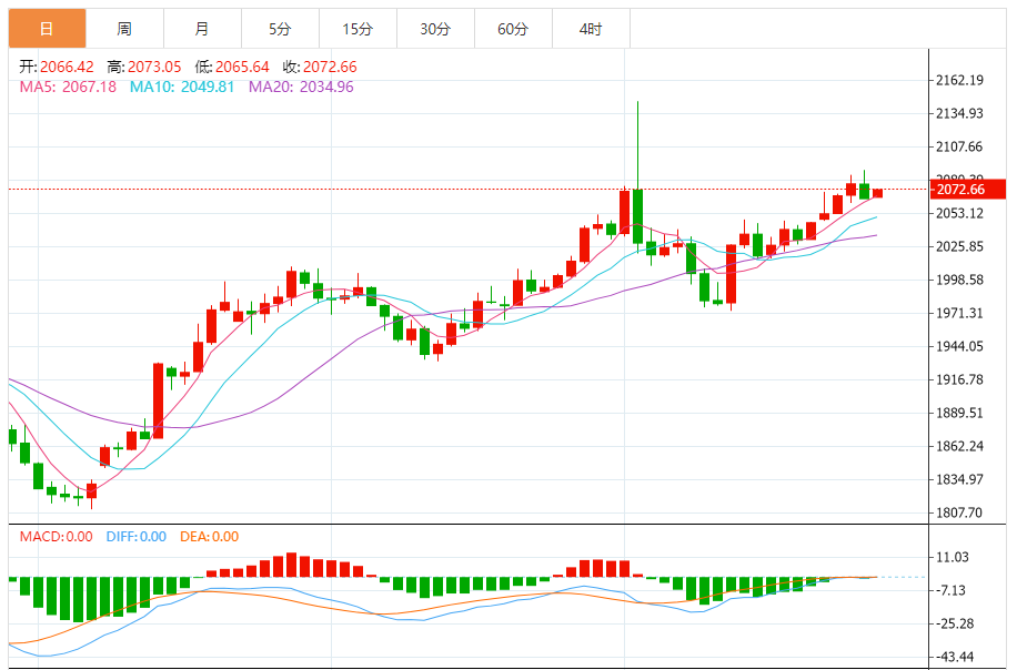 预计今天的交易区间:在2055.00支撑和2090.00阻力之间。