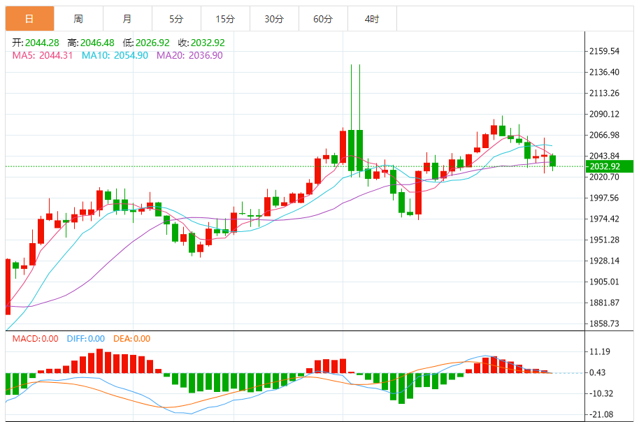 今天的预期交易区间:在2015.00支撑和2055.00阻力之间。