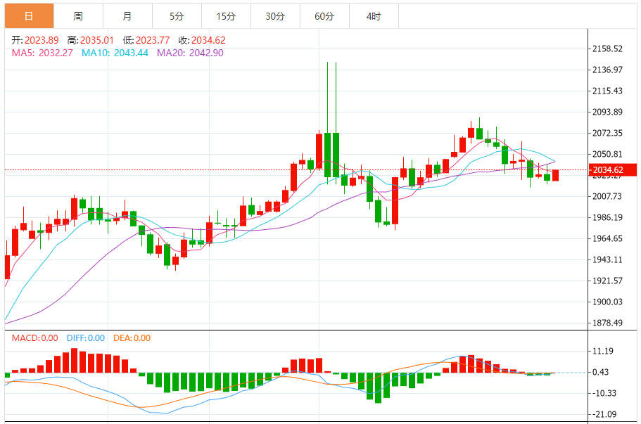 今天的预期交易区间:在2010.00支撑和2040.00阻力之间。