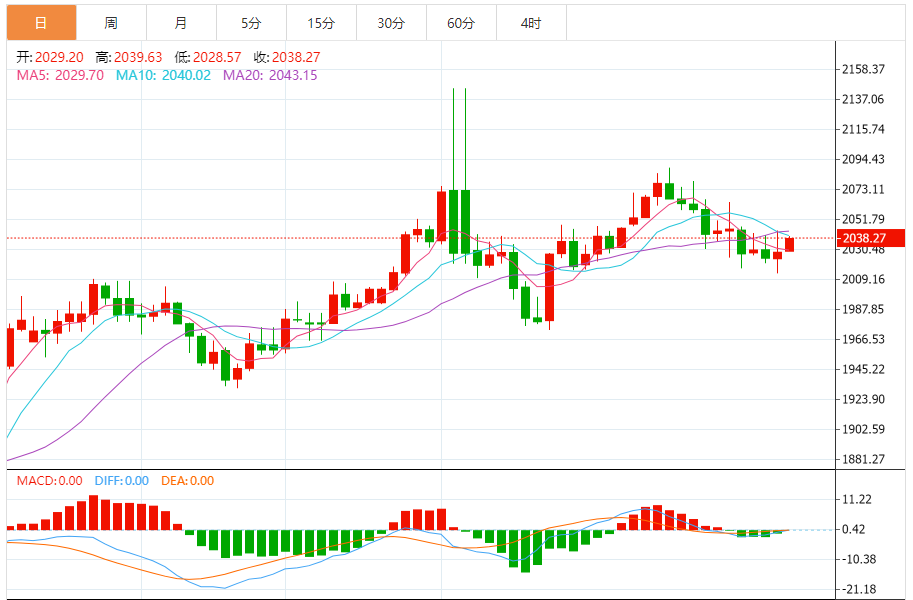 预计,今日金价交投将于支撑位2010.00美元/盎司以及阻力位2045.00美元/盎司之间。