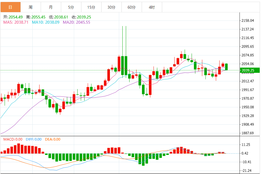 4小时图摸高未破高,空间不定,目前中轨的支撑与破高点2042开始重合,今日仍重点留意2040-2042区域的支撑,此处若是跌破,则重新回归弱势震荡节奏。由于昨日没能破高,使得今日多空延续不定,稳健一点操作等待走出区间2062-2040之后再行安排,以免多空反复切换,看涨不破高,看跌不破低。多空延续不足,容易来回拉锯。结合形态灵活应对,以临盘为准。