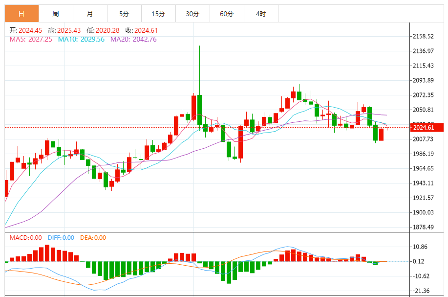 今天的预期交易范围:在2010.00支撑位和2045.00阻力位之间。