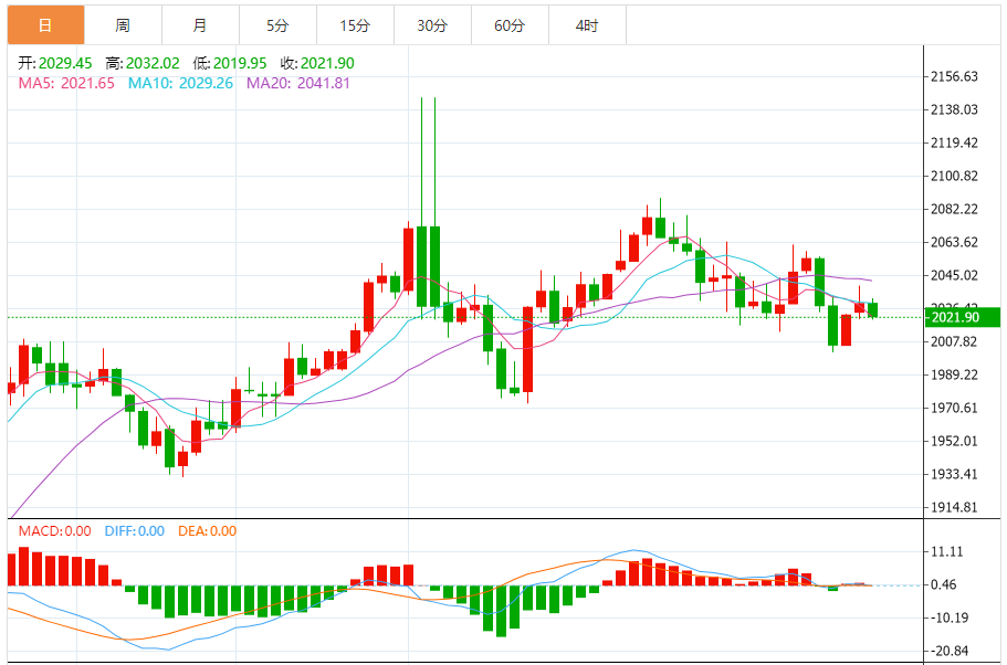 预计,今日金价交投将于支撑位2010.00美元/盎司以及阻力位2045.00美元/盎司之间。