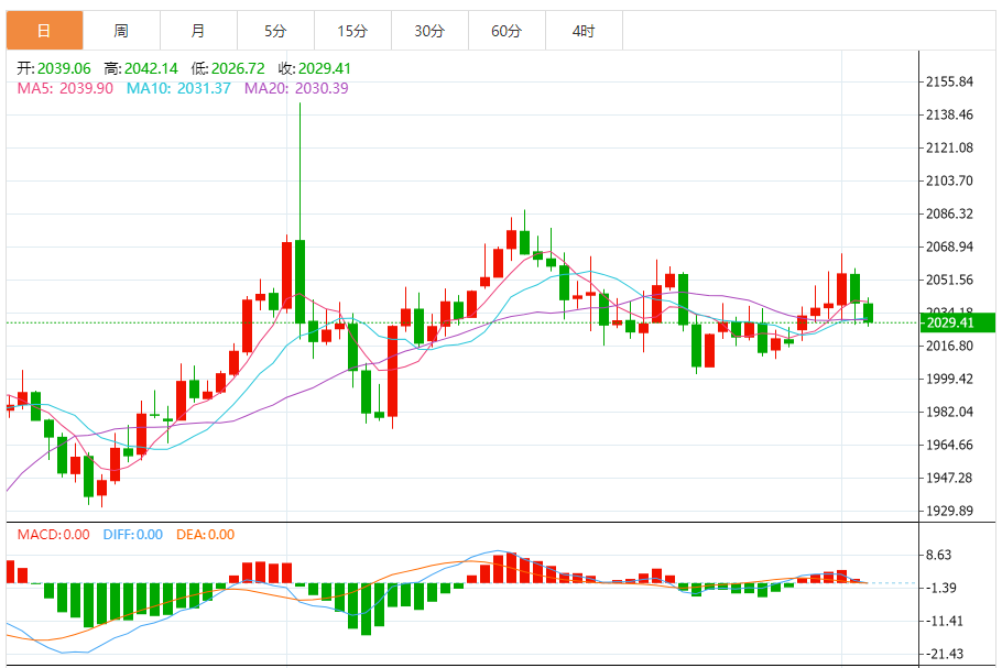 今天的预期交易范围:在2020.00支撑和2055.00阻力之间。