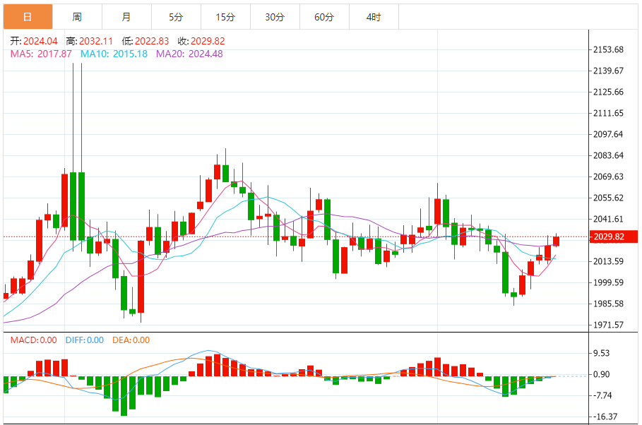 今天的预期交易范围:在2015.00支撑和2050.00阻力之间。