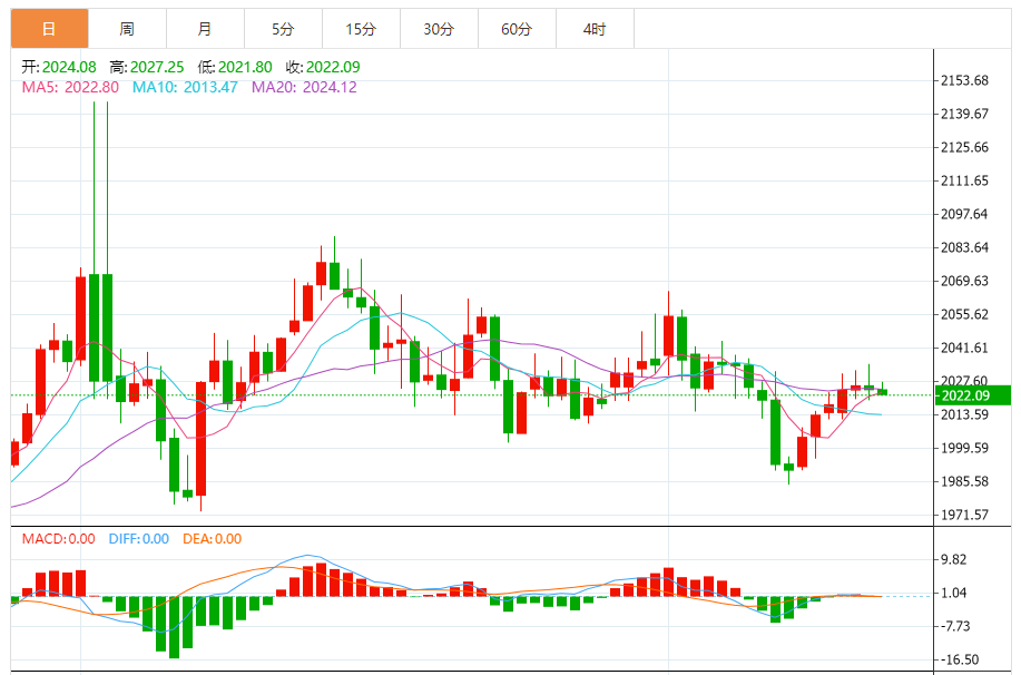 今天的预期交易范围:在2015.00支撑和2045.00阻力之间。