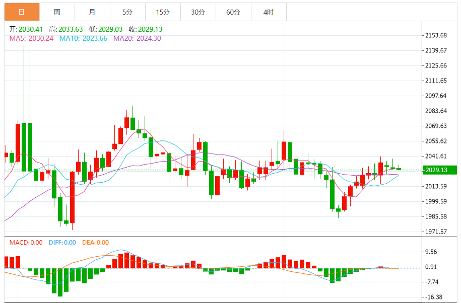 今天的预期交易范围:在2015.00支撑和2050.00阻力之间。