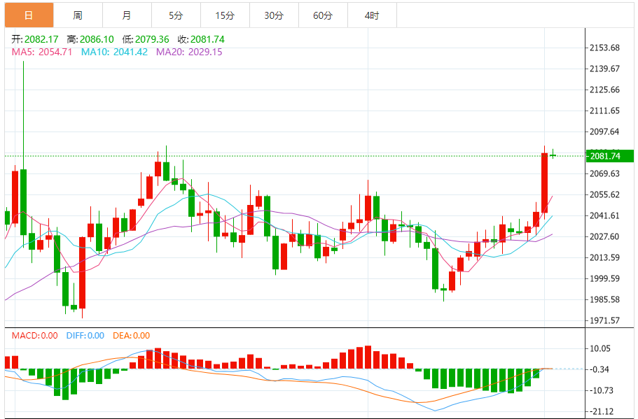 今天的预期交易范围:在2070.00支撑和2100.00阻力之间。