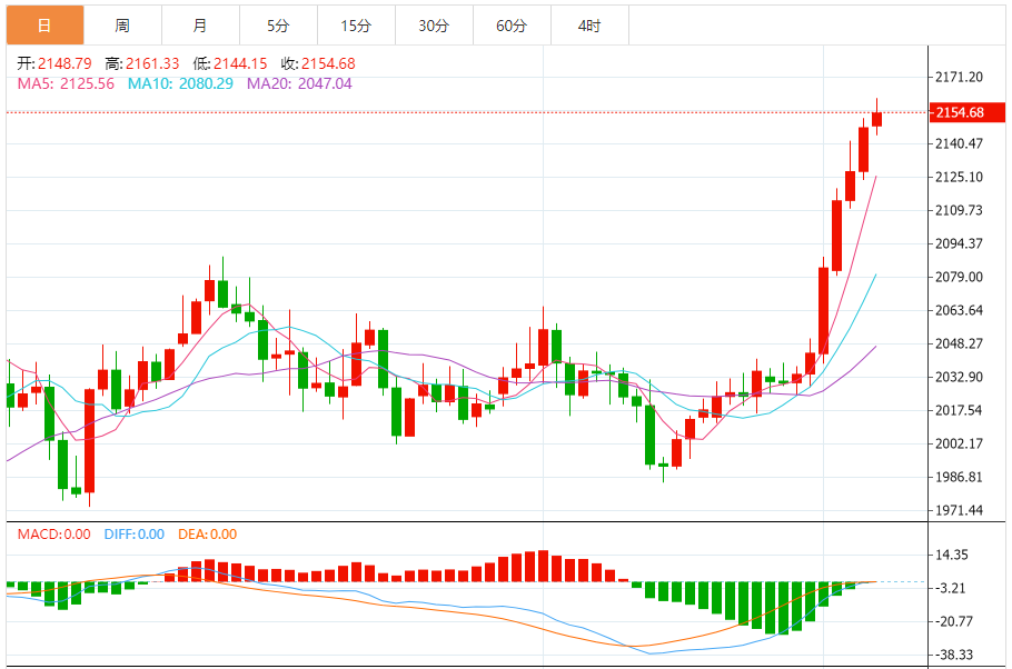 今天的预期交易范围:在2135.00支撑和2170.00阻力之间。