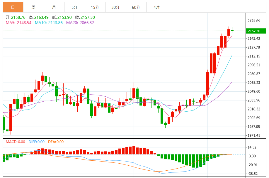 今天的预期交易范围:在2140.00支撑和2175.00阻力之间。