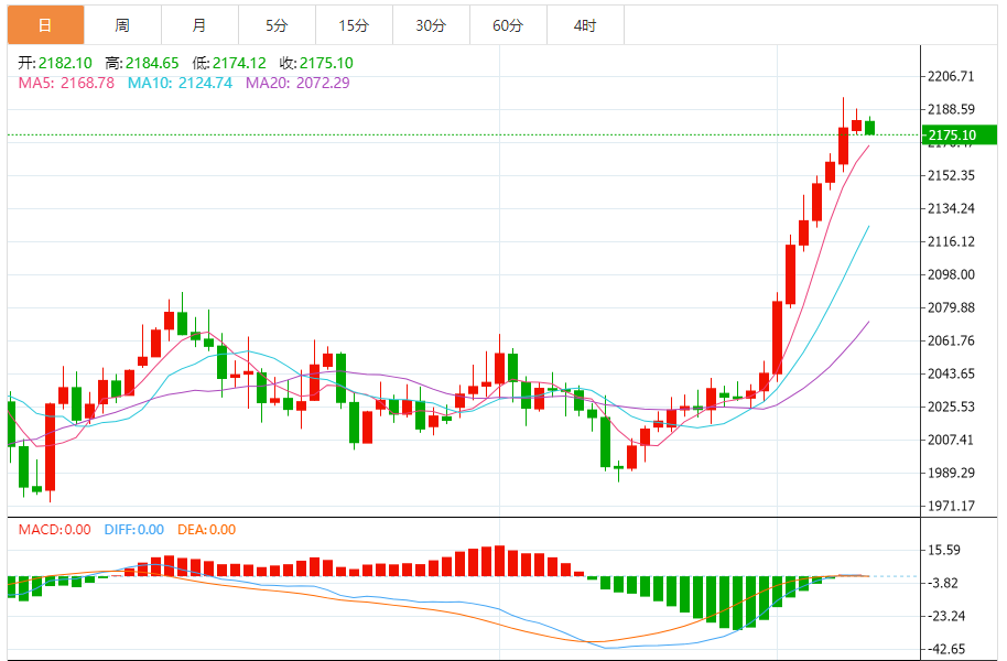 今天的预期交易范围:在2165.00支撑和2200.00阻力之间。