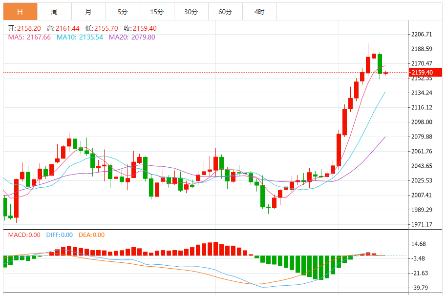 今天的预期交易范围:在2145.00支撑和2180.00阻力之间。