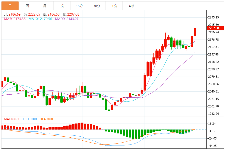 今天的预期交易范围在2190.00美元支撑位和2230.00美元阻力位之间。