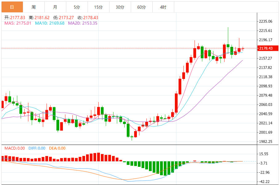 今天的预期交易范围:在2160.00美元支撑位和2195.00美元阻力位之间。
