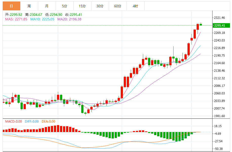 下行方面,如果跌破2250美元/盎司,金价可能会出现回调。首个支撑位将在2200美元/盎司,随后是3月8日高点2195美元/盎司,更下方支撑位于2150美元/盎司。