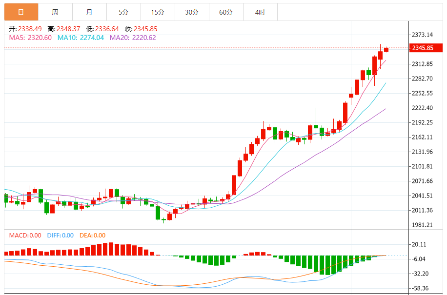 预期交易范围:位于2325.00美元支撑位和2360.00美元阻力位之间