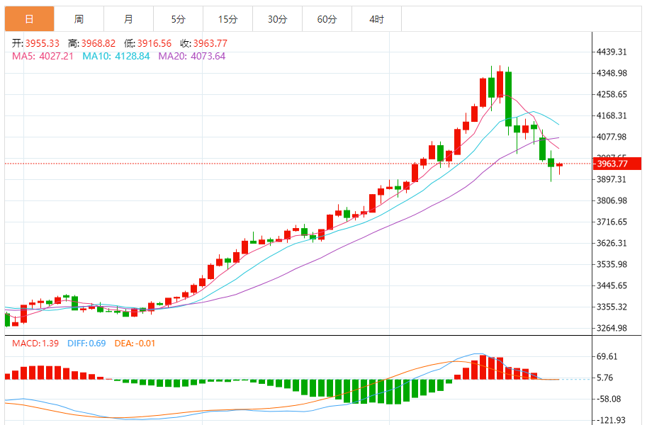 周三(10月29日),现货黄金目前位于3968.70美元/盎司附近,涨幅为0.41%。