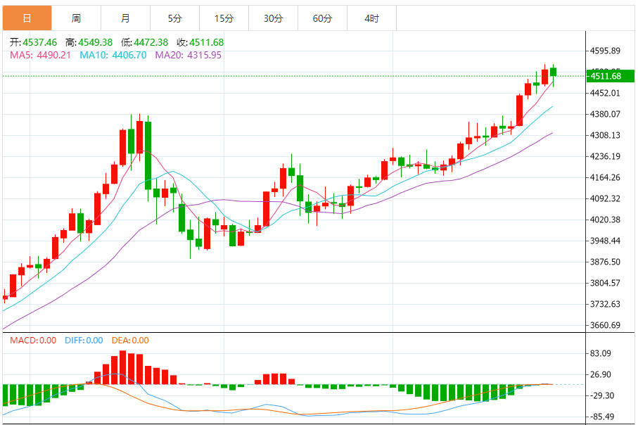 周一(12月29日),现货黄金目前位于4511.34美元/盎司附近,跌幅为0.45%。