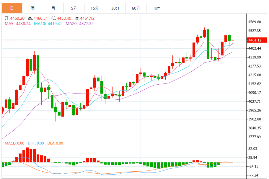 周三(1月7日),现货黄金目前位于4456.66美元/盎司附近,跌幅为0.84%。