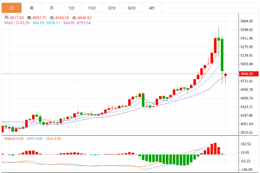 周一(2月2日),黄金低开延续跌势,现货黄金一度下跌逾3%,截止发稿,最低触及4694.58美元/盎司。