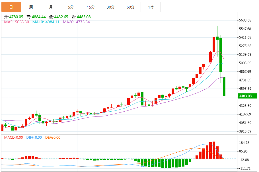 周一(2月2日),现货黄金目前位于4483.05美元/盎司附近,跌幅为7.81%。
