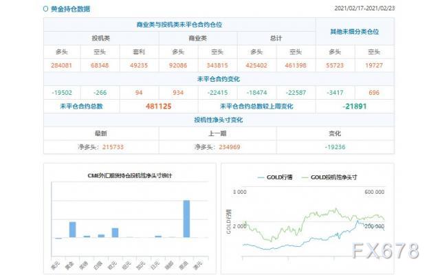 CTFC持仓数据:美国商品期货交易委员会(CFTC)周五(2月26日)发布的报告显示,截止至2月17日至2月23日当周:黄金看多意愿降温;黄金投机性净多头减少19236手合约,至215733手合约,表明投资者看多黄金的意愿降温。