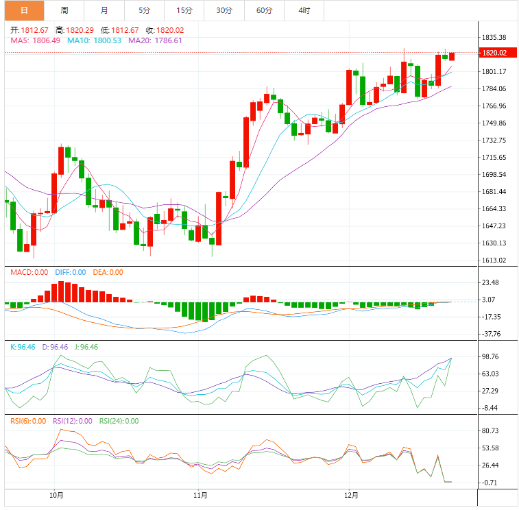 黄金价格在盘中高点接近1820美元,扭转了前一天从一周高点回落的趋势,因为市场在周四早些时候进入了假日情绪。另一个利好黄金的因素可能是,由于各种催化剂和数据发布前的焦虑情绪,美元近期出现回落。