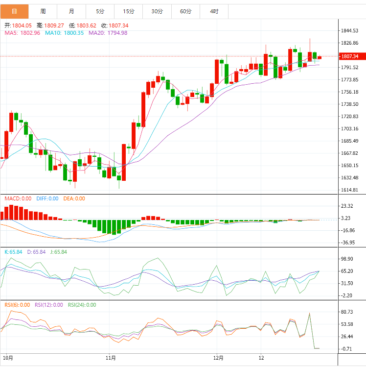 黄金价格由于没有重大经济事件,波动率将会收缩。金价在跌至接近100周期指数移动平均线(EMA)的1,802.20美元后开始走强。此外,200-均线1,793.35美元的目标更高,这表明上行偏见仍然稳固。