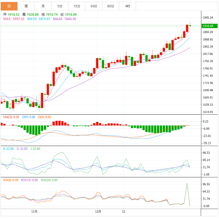 金价从本周一早些时候触及的近9个月高点1929美元附近回落,在欧洲时段的前半段保持低迷。黄金/美元在最后一小时跌至新的日低,约1910美元附近,儘管随后的任何下滑都可能被看作是买入机会,但仍然有限。