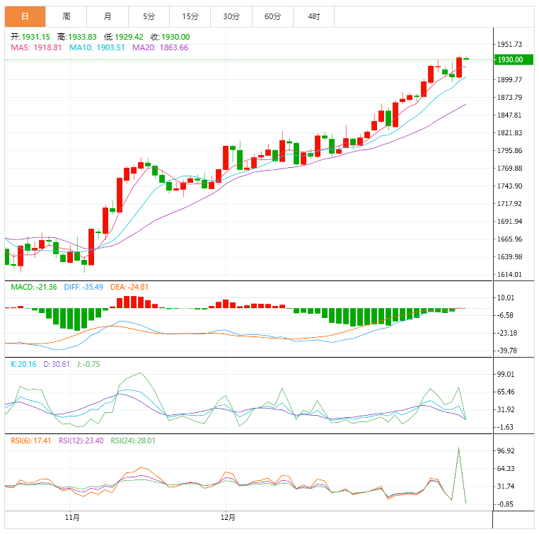周五亚洲时段,黄金小幅下跌交投于1929.73附近。周四金价上涨超过1%,受助于美元走软和一些避险需求,此前公布的美国经济数据不佳,且美联储官员的鹰派发言加剧了对经济衰退的担忧。现货金攀升1.1%,至每盎司1924.09美元,接近周一触及的九个月高位1929美元。
